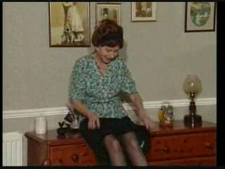 Рыжая бабуся в чулках старательно сосет пенис и дрочит сиськами